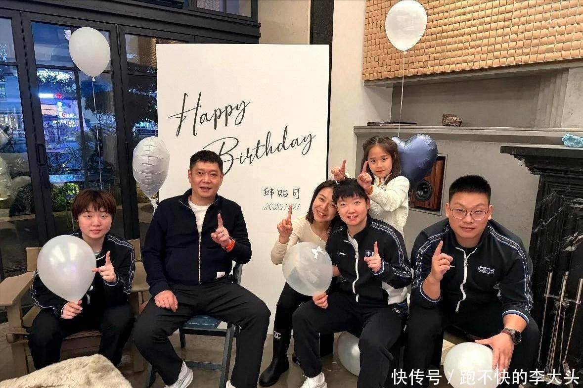 孙颖莎在邱贻可40岁生日家宴稳坐“家人席”,邱妻挽臂靠肩、小女儿搂脖合影,现场像一家人而不是普通师徒